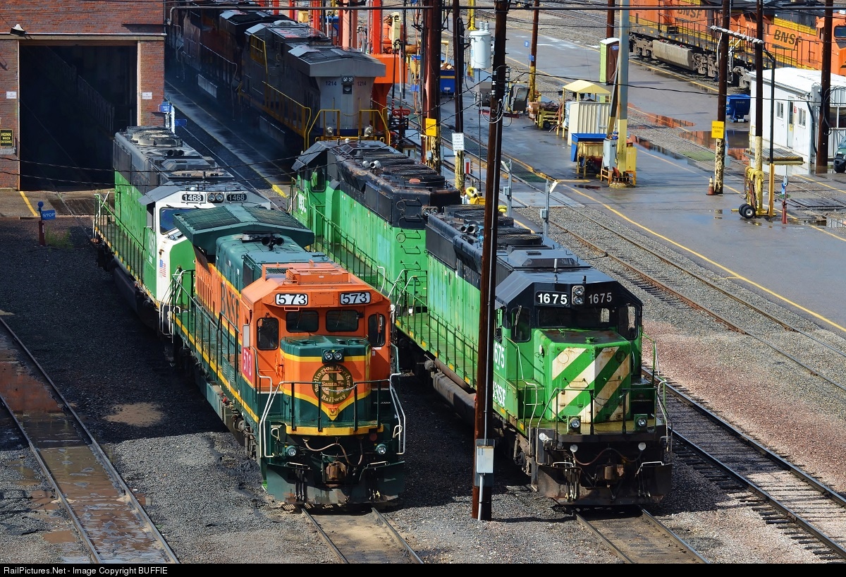 This quartet of veterans was spotted in the BNSF engine servicing facility yard, including BNSF 573 (a former ATSF B40-8W Warbonnet built in 1992 now wearing a Heritage I paint scheme), BNSF 1468 (a former BN SD60M built in 1991), BNSF 1933 (a former BN SD40-2 built in 1979) and BNSF 1675 (another former BN SD40-2 built in 1978). One has to wonder how many more years these warhorses will remain active, as their combined age represents 124 years of service.