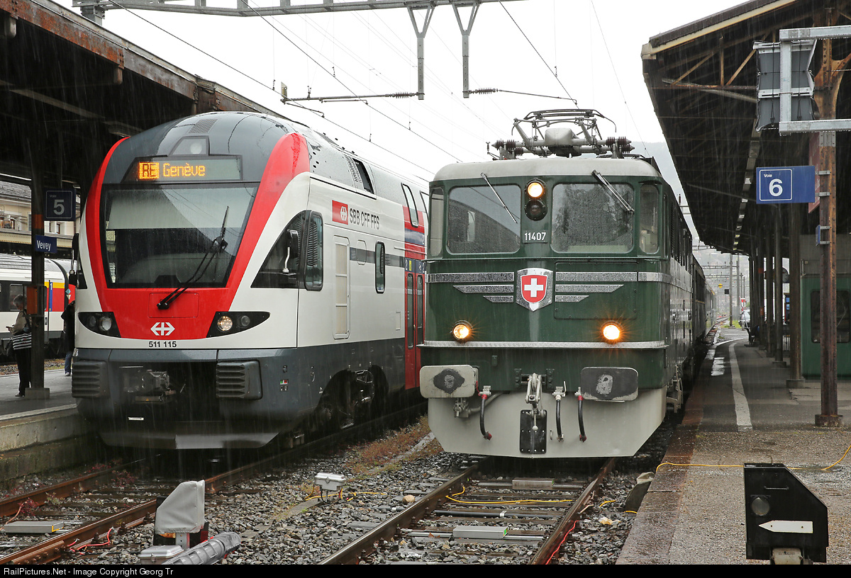 RailPictures.Net Photo: 511 115, 11407 SBB RABe 511.1, Ae 6/6 at Vevey, Switzerland by Georg Trüb