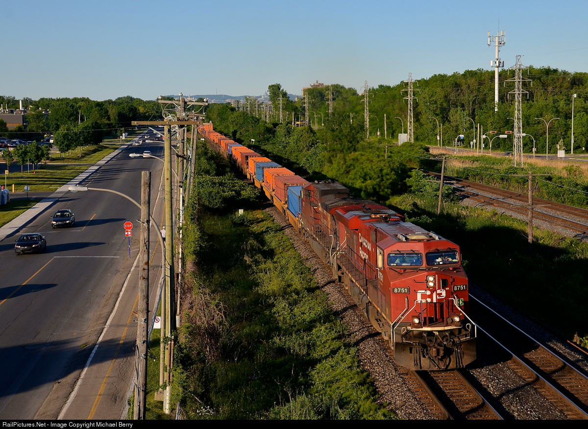 | A late CP 143. A late CP 143 is through Pointe-Claire just after CP 133 passed, with CP 8751 & CP 8537 for power. The train is 100% intermodal, something which is rare recently as this train is almost always filled out with mixed freight out of Montreal. |