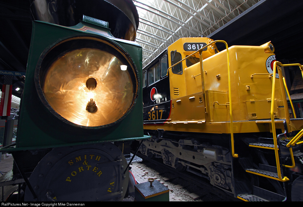 The large box headlight of Northern Pacific’s first locomotive shines brightly next to SD45 No. 3617 at the Lake Superior Railroad Museum at Duluth, Minnesota, on June 10, 2016. The wood-burning No. 1 “Minnetonka” is a 0-4-0 built in 1870 by Smith and Porter of Pittsburgh, while on the adjoining track and towering over the diminutive 12-ton locomotive is EMD SD45 No. 3617 built in 1967, nicely representing NP’s last high-horsepower locomotives that ushered the railroad into Burlington Northern and the history books.