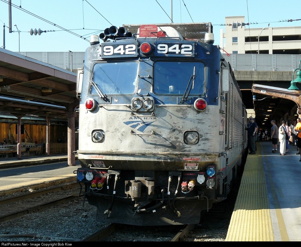 The well-worn 942, doubleheading with sister unit 946, is ready to pull Amtrak's special "Farewell to the AEM-7 Excursion," Train No. 942, scheduled for a 9:10 a.m. departure from Track 14. The train performed a runby at MARC's Halethorpe, MD station, and then proceeded to Philadelphia for wyeing. At Zoo Tower, the train reversed through the old PRR "Philadelphia to Pittsburgh Subway" and ran to Amtrak's Wilmington Maintenance Facility for a shop tour for the train's 476 passengers. All in all a very successful trip; thanks to Amtrak and MARC for making the day possible.