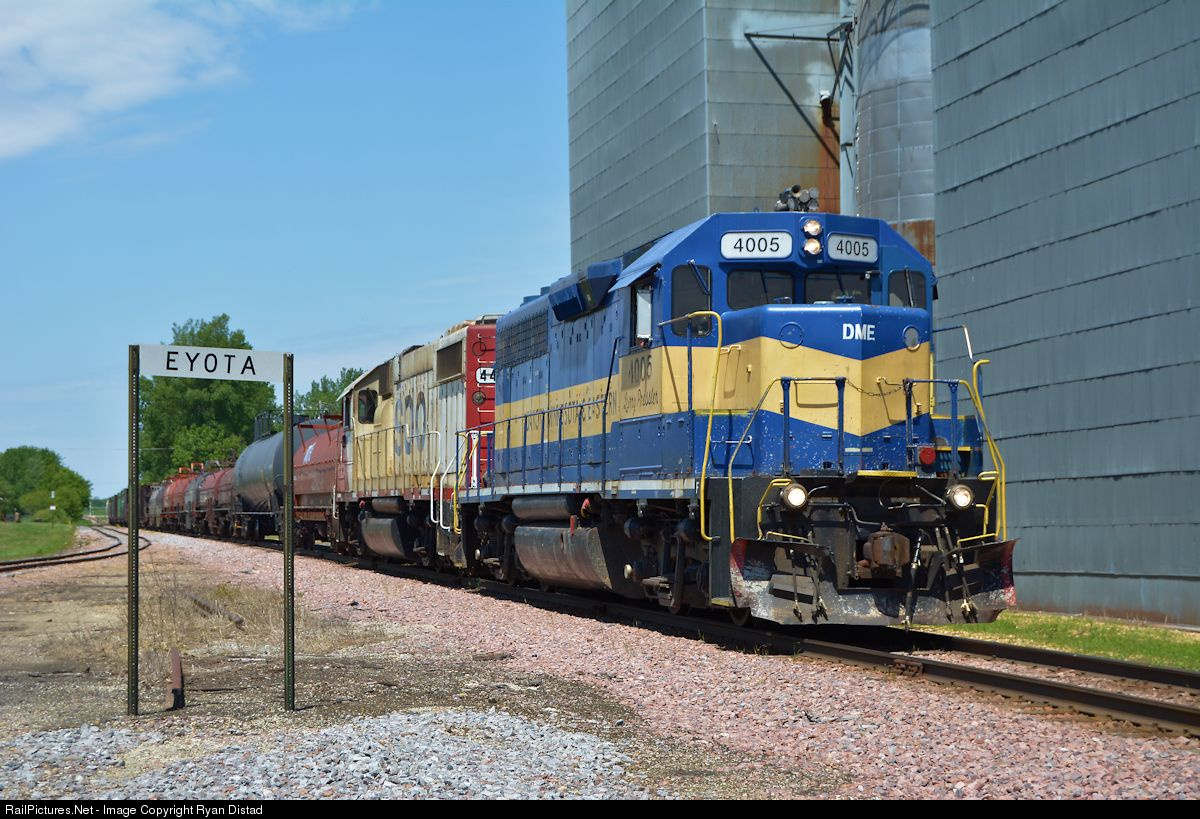 Years later, once again two geeps get paired up on train B24. Two geeps used to be the norm this job up till the the mid 2000's when only a single geep was needed. The lashup of SOO 4409 and DM&E 4005 pull into Eyota, MN to run around their train and head back west to Waseca to end the day. The long string of cars were built up from working throughout the day between Waseca, MN and Eyota, MN. This is the farthest the wayfreight comes east as the last industry east of Rochester is Kruegel Gas that is located on the westside of Eyota.