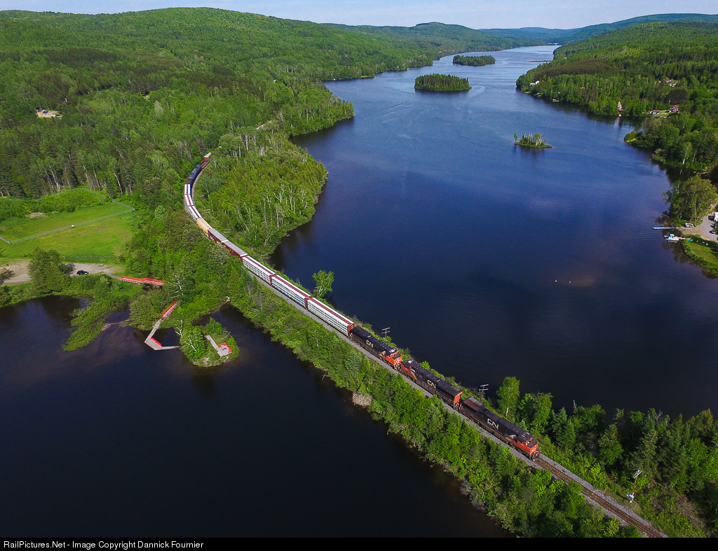 CN 305 passed Saint-Marc-du-Lac-Long, QC and the Long Lake in background