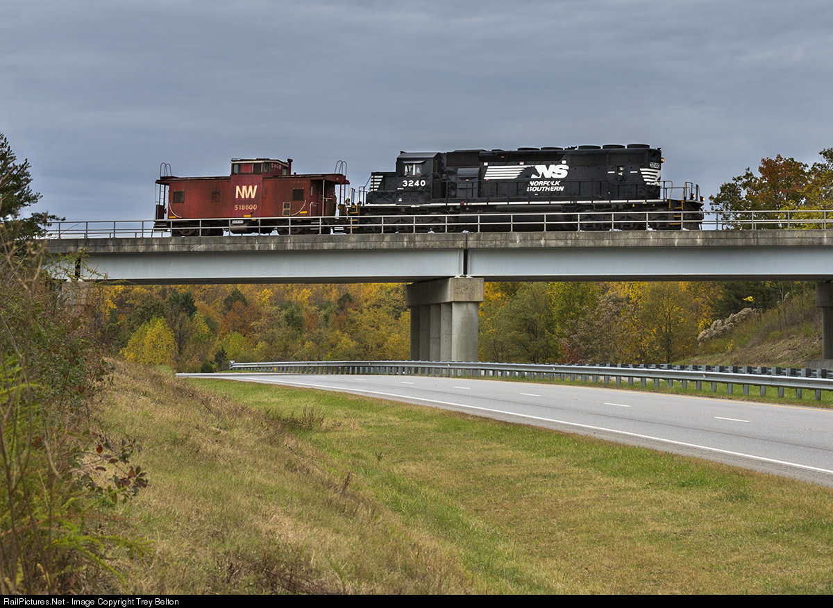 Ex Southern NS 3240 leads the "local" NS V74 south over US 220 with the former N&W caboose 518600.