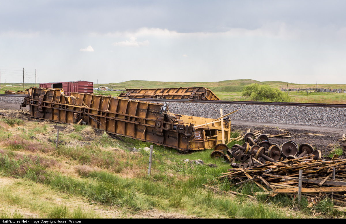 | The cleanup efforts from the derailment that happened in Cheyenne a couple of weeks ago is coming along nicely. Crews have piled up most of the wood and wheel sets. A few centerbeam cars are still on their side. |