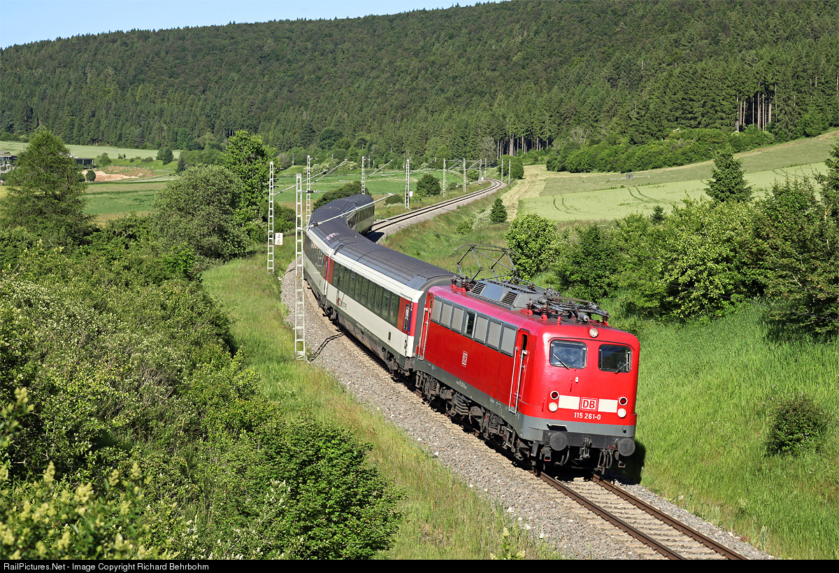 | Occasionally there are locomotives of the 1960s in operation for leading Intercity trains Stuttgart – Singen (- Zürich). 115 261 was built in 1962. |