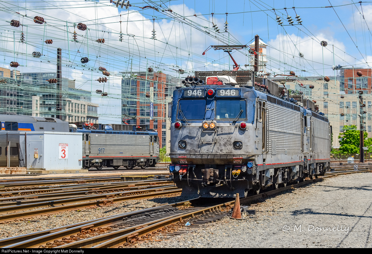 The final three together 946 and 942, power for the Farewell to the AEM-7 Excursion, are seen on a test run from the Ivy Citry Motor Pit to the station and back on the day before the excursion. The 917, the only other active AEM-7, is seen switching a MARC car in the background for the trifecta.