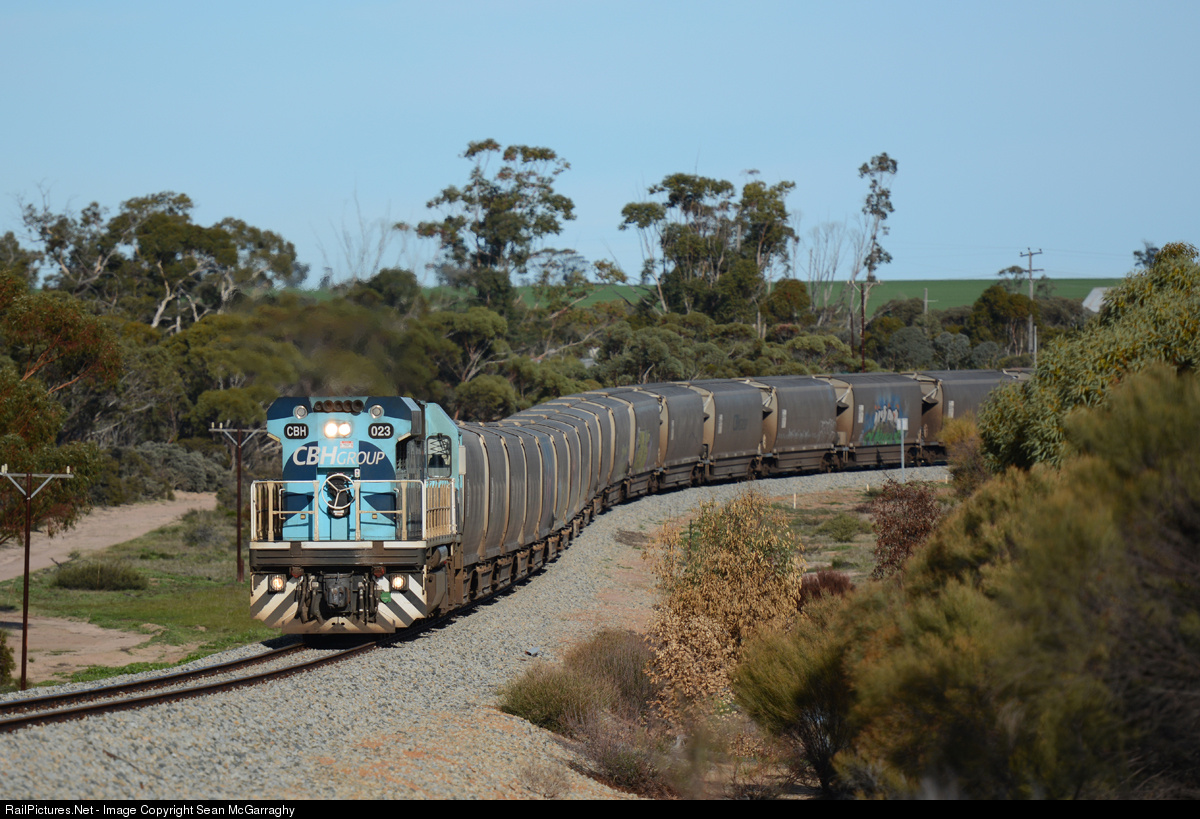 | Having just dropped half it's load of empty grain hoppers off at Dowerin along with the former lead unit, CBH003, 7K63 empty grain continues on through Minnivale for its destination of Mukinbudin behind solo CBH023. This train is the first of two trains to load grain at Mukinbudin on this day. |