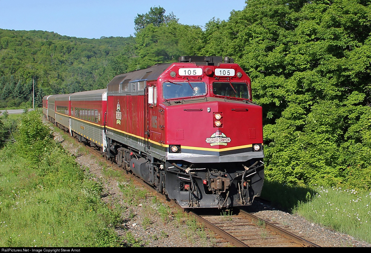 CN 105 heads east on the SOO subdivision with the Agawa Canyon Tour Train.