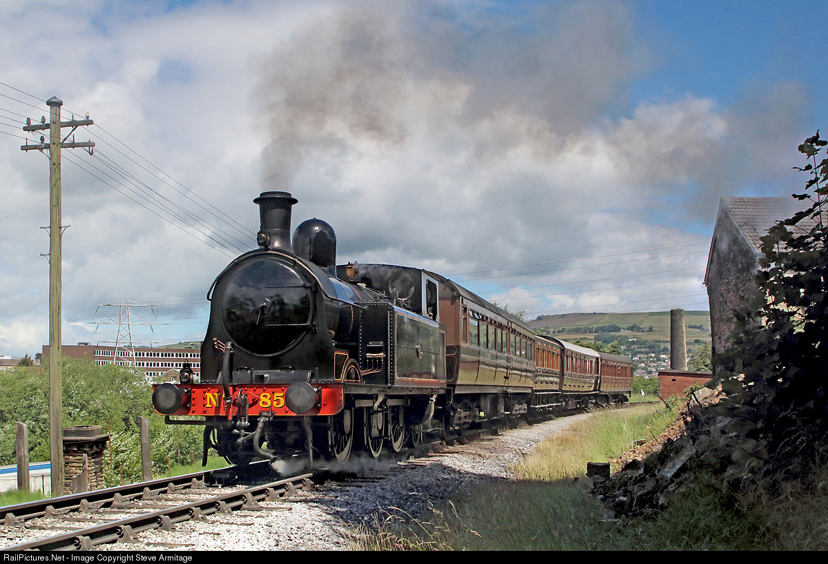 The Keighley and Worth Valley's wonderful 'Vintage Train' season makes images like this a reality. In a train of just one locomotive and four carriages, there is a combined age of close to 500 years! The whole gleaming consist is seen climbing out of Keighley on it's five mile journey to the line's terminus at Oxenhope