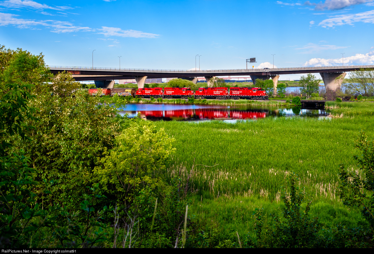A fresh looking set of CP power leads a train toward Superior WI on a warm afternoon in Duluth.