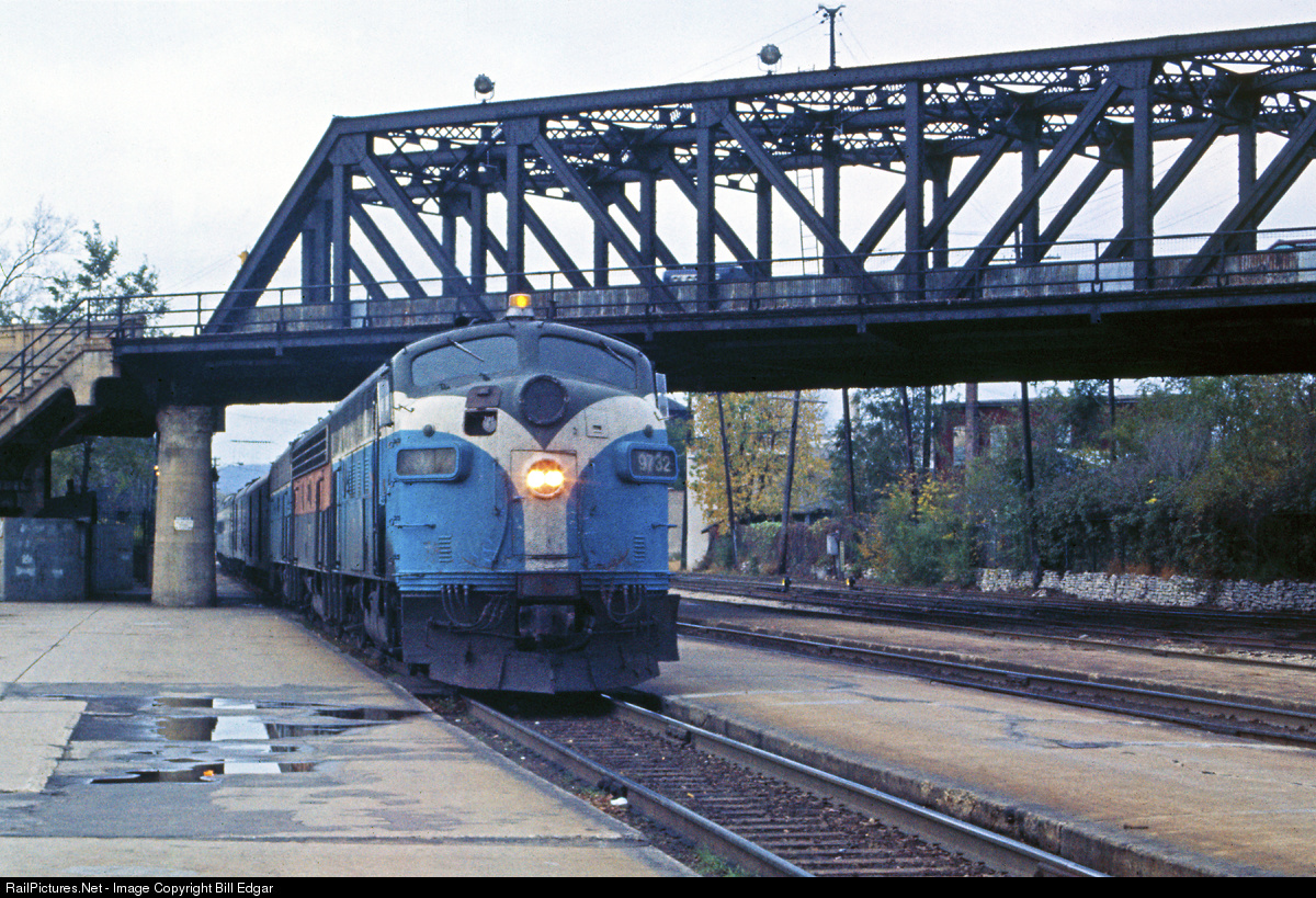 On a dreary day before Halloween, Amtrak's Empire Builder pulls into North La Crosse behind a trio of former Great Northern Fs, looking much like pre-Amtrak. This train would take me to Chicago for a job interview with C&NW on Halloween which would in turn lead to a twelve and a half year career with that carrier. I was the only candidate that arrived for the interview by train.