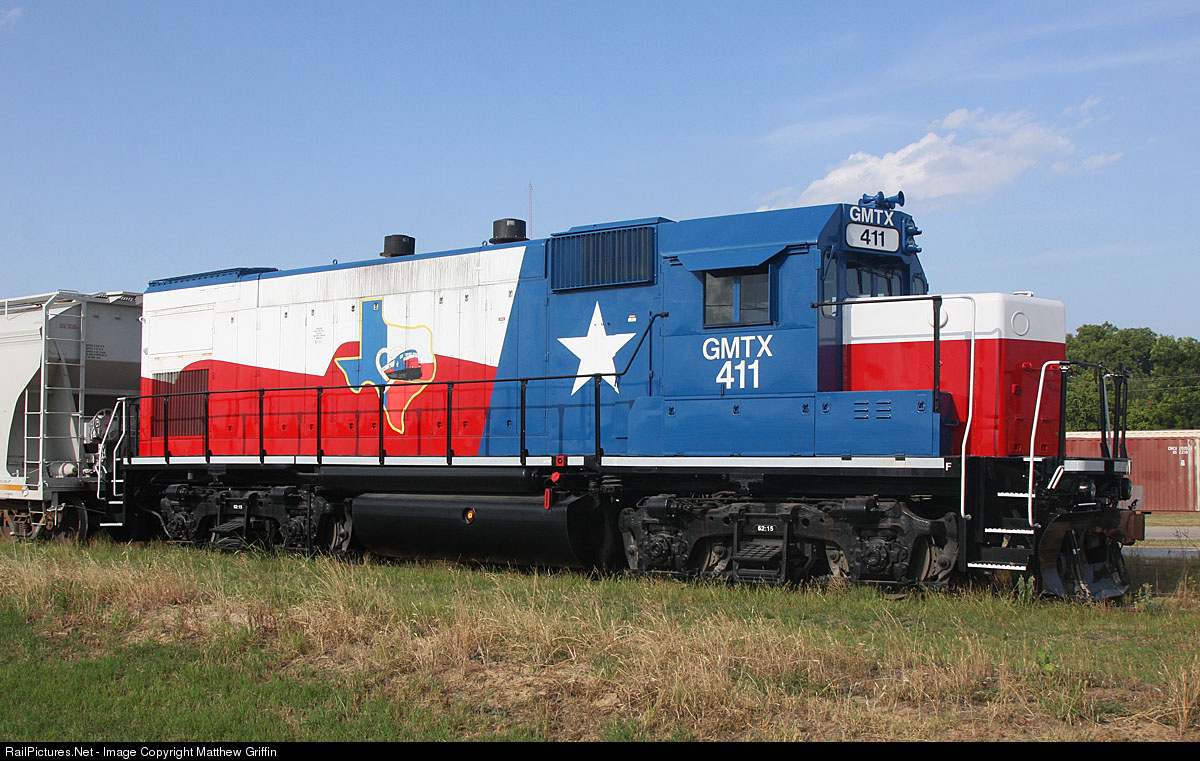 GMTX 411 at Brady, TX. This line will also be under the operation of Watco soon, and these nicely painted units will be going back to GMTX leasing.