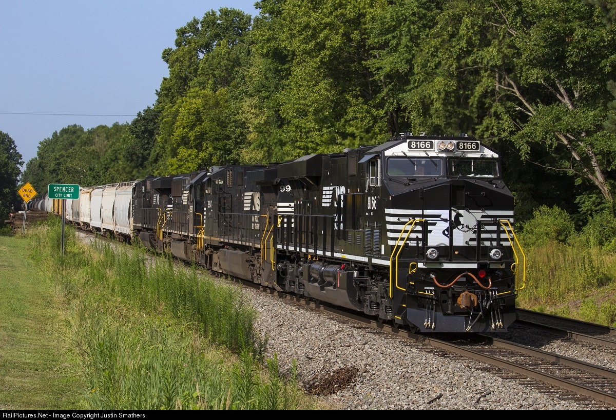 Another massive freight, this time NS 154, eases downgrade toward Linwood with a fresh out of the box ES44AC 8166 leading. This is one of three tier 4 credit units ordered by Norfolk Southern in 2016. Note the white-on-black number boards, contrary to standard NS practice. Personally, I think they look pretty sharp.