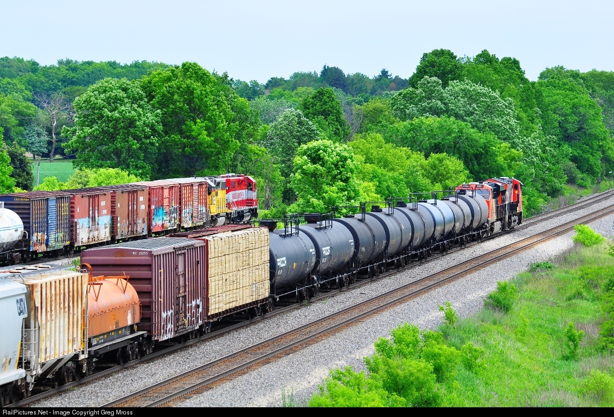 CN 3045 is slowing for a meet at Ackerville as the WSOR local from Horicon accelerates for Milwaukee. The WSOR crews swap trains at Horicon. This is one of my favorite going away shots.