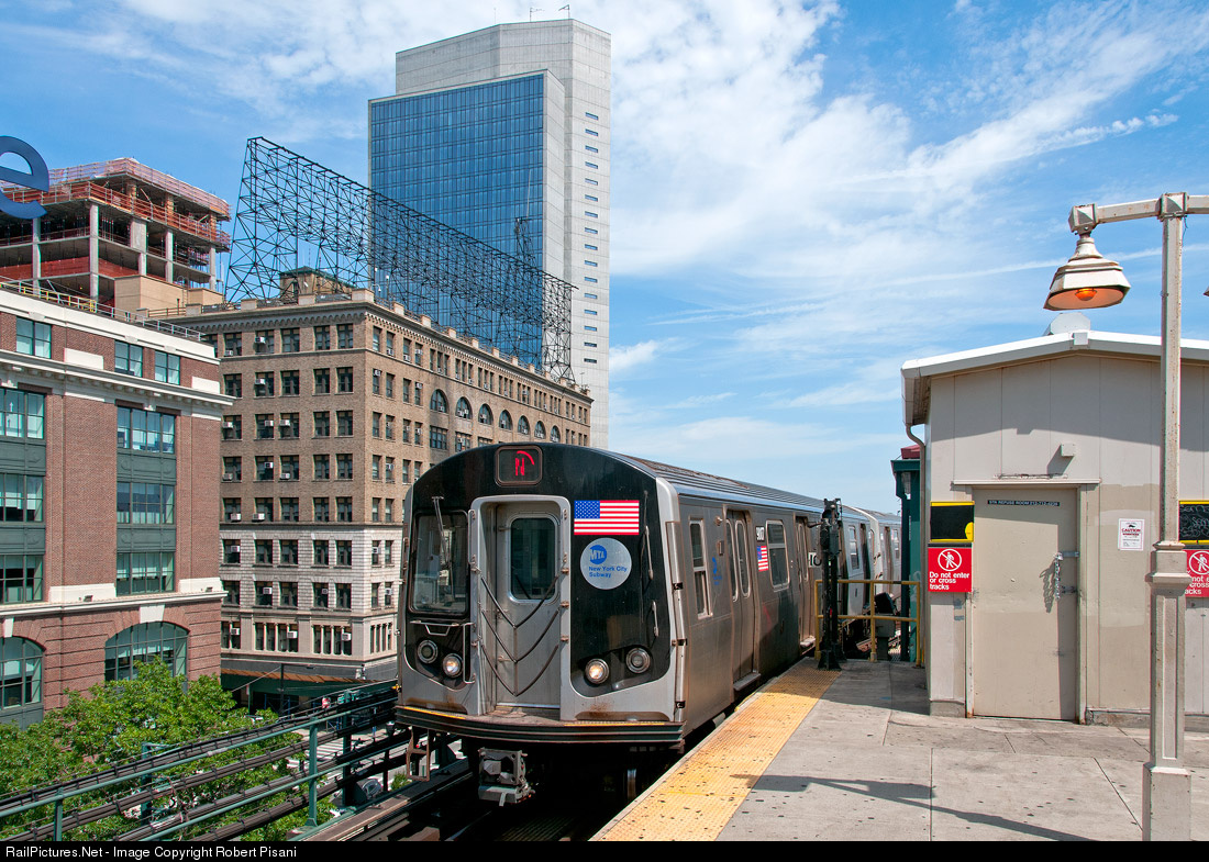 A Manhattan-bound N Train runs against the usual current of traffic, stopping on the upper level of Queensboro Plaza station. Inbound N, Q and 7 trains typically stop on the lower level of this elevated station. Track maintenance is responsible for this temporary adjustment.