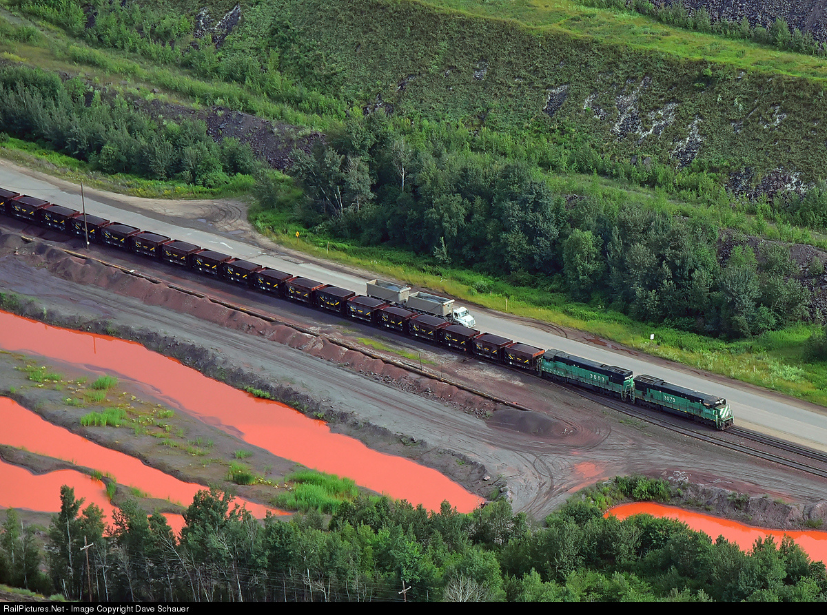 As surprising as it seems, former BN GEs continue in service on venerable iron ore hauler LS&I in Michigan's Upper Peninsula. Here 3073 (C30-7) and 3009 (U30C) ease 60 iron ore loads out of the Tilden mine as a truck used to haul limestone heads back to Marquette for another load. Cessna 172 Skyhawk.