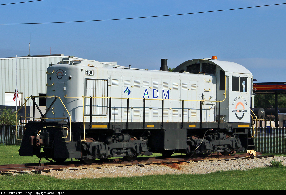 | ADMX 2311 sits outside of ADM's railcar repair facility in Decatur. The 2311 used to work here before suffering a fire, which led to it being put on display outside. 2311 is the number of the address of ADM's railcar facility. |