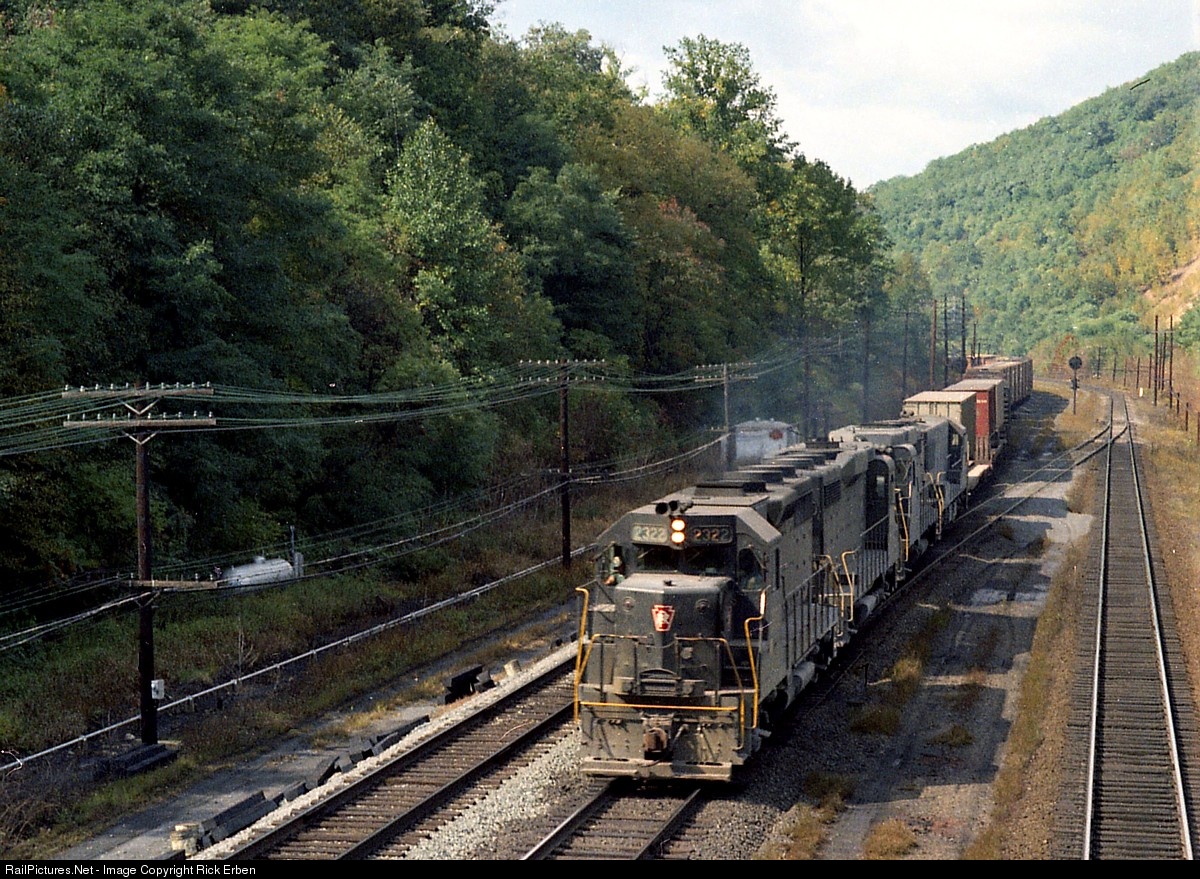 PRR symbol freight PR-4 for Camden, NJ has 76 cars behind the 2322, 2227, 2247 and 2641 (GP-35, two GP-30s and a U-25B). Tunnel is located east of the twin Spruce Creek Tunnels where, at this point in time, the railroad narrowed to two main tracks passing through Tussey (or Short) Mountain. No matter how spartan PRR's second generation power appeared, the keystone always stood out.