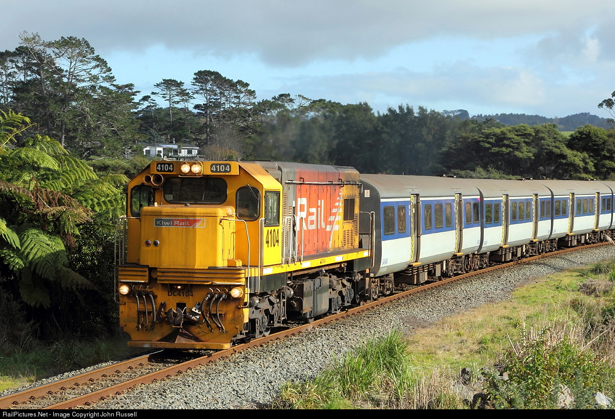 Trains on 3' 6" (1.067m) track from Whangarei to Bluff with virtually heritage rebuilt EMD and GE locomotives still the mainstay power. The network was privatized in 1990's and operated by Toll until 2008 when state owned KiwiRail was established.
