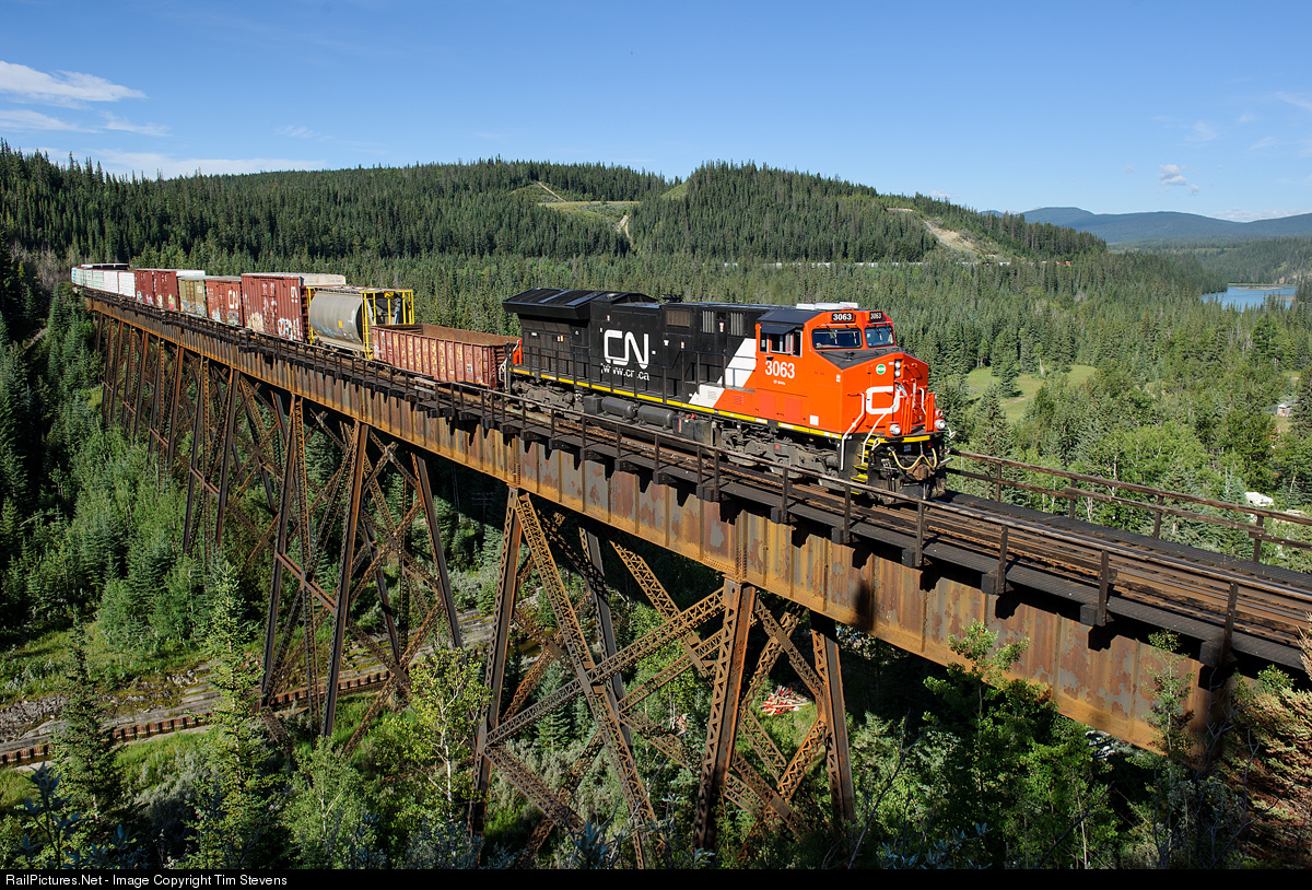 RailPictures.Net Photo: CN 3063 Canadian National Railway GE ET44AC at Hinton, Alberta, Canada by Tim Stevens