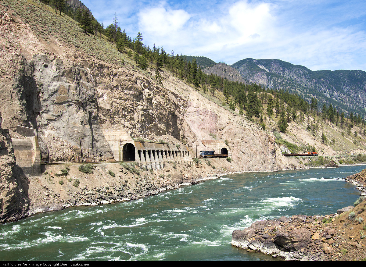 With BC Rail power and a BC Rail caboose, Canadian National work train 906 navigates the tunnels and sheds at Drynoch in the heart of slide country on CN's Ashcroft Sub.