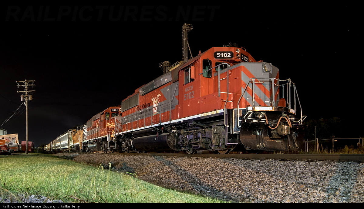 Night Shot on the Alabama & Tennessee River RY, The crew has just tied down the train and gone home, Power is ex Nebraska, Kansas & Colorado GP50's #5102 & #5101 and GWR #5625 GP20