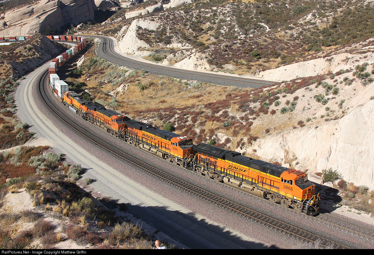 RailPictures.Net Photo: BNSF 3868 BNSF Railway GE ET44C4 at Sullivan's curve, California by Matthew Griffin