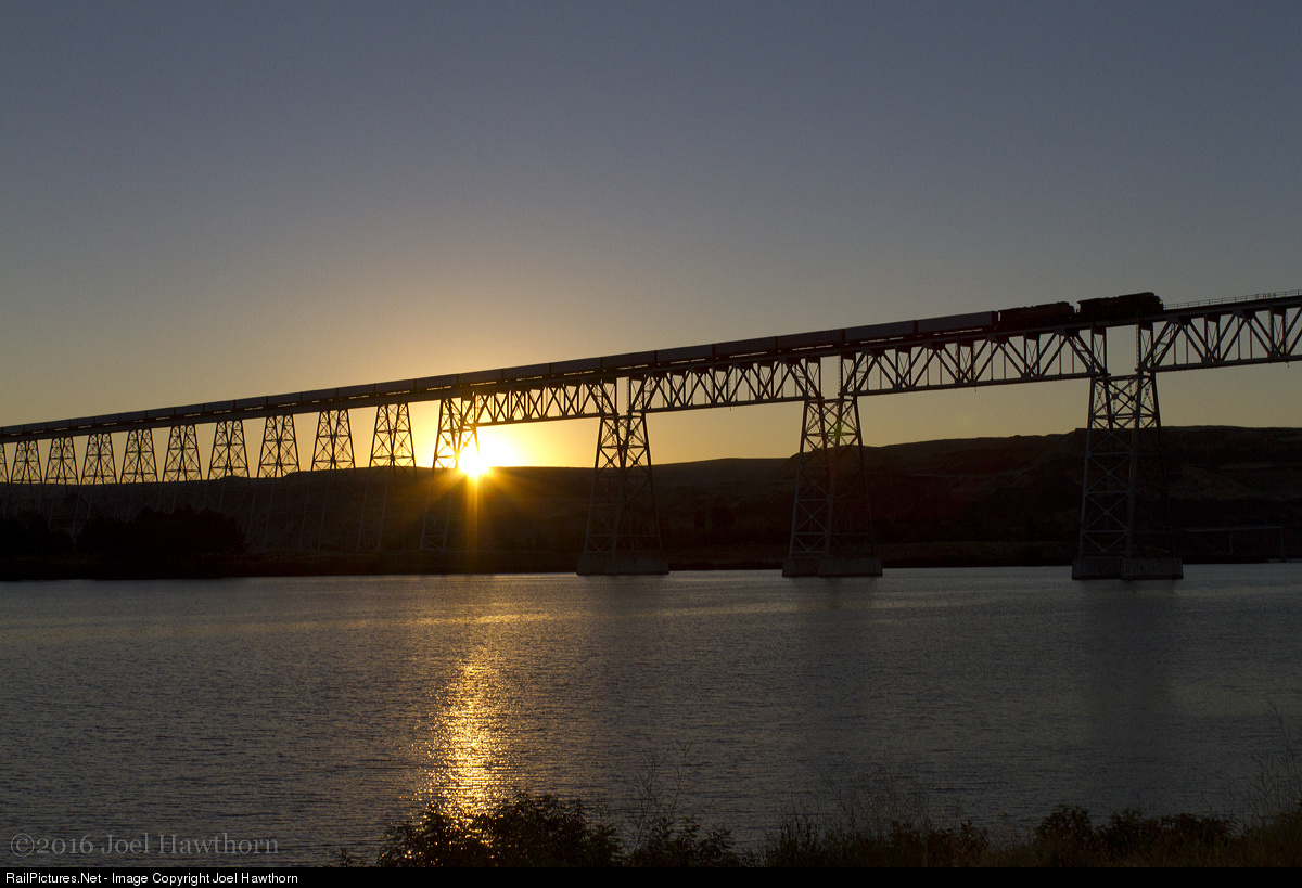The beginning of a beautiful morning in a remote corner of Southeast Washington arrives with a southbound crossing over the Snake River on the 1914 vintage "Joso" railroad bridge.