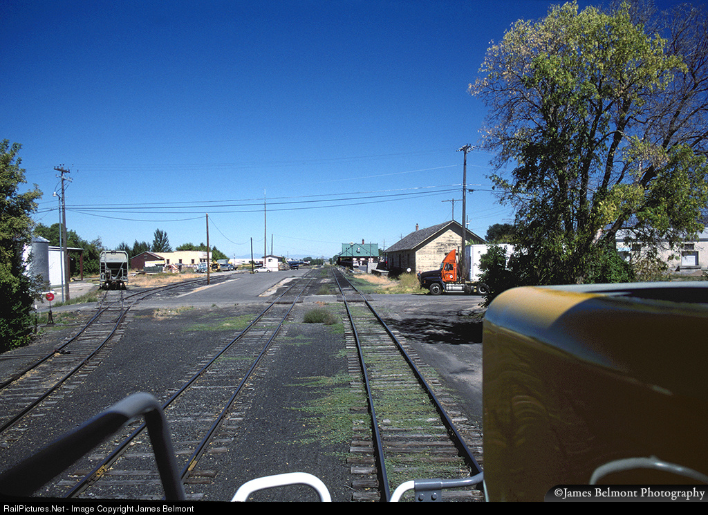 A view from the conductor's seat: UP 2576 leads the Cache Valley Local into Logan Yard on Sept. 7, 1999. The train won't be stopping here as they have two covered hoppers for IFA in Lewiston, not far from the Idaho state border.