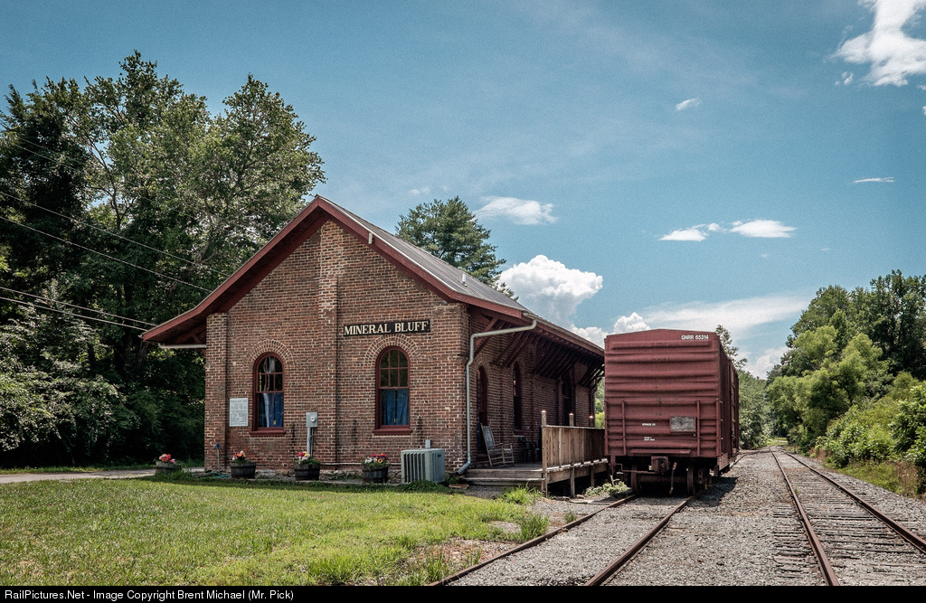 The depot in Mineral Bluff, GA, sits on the now abandoned line that ran between Blue Ridge, GA, and Murphy, NC. It was built in 1887 by the Marietta & North Georgia Railroad and is the last remaining depot of that line. It is also the oldest building still standing in Fannin county today.