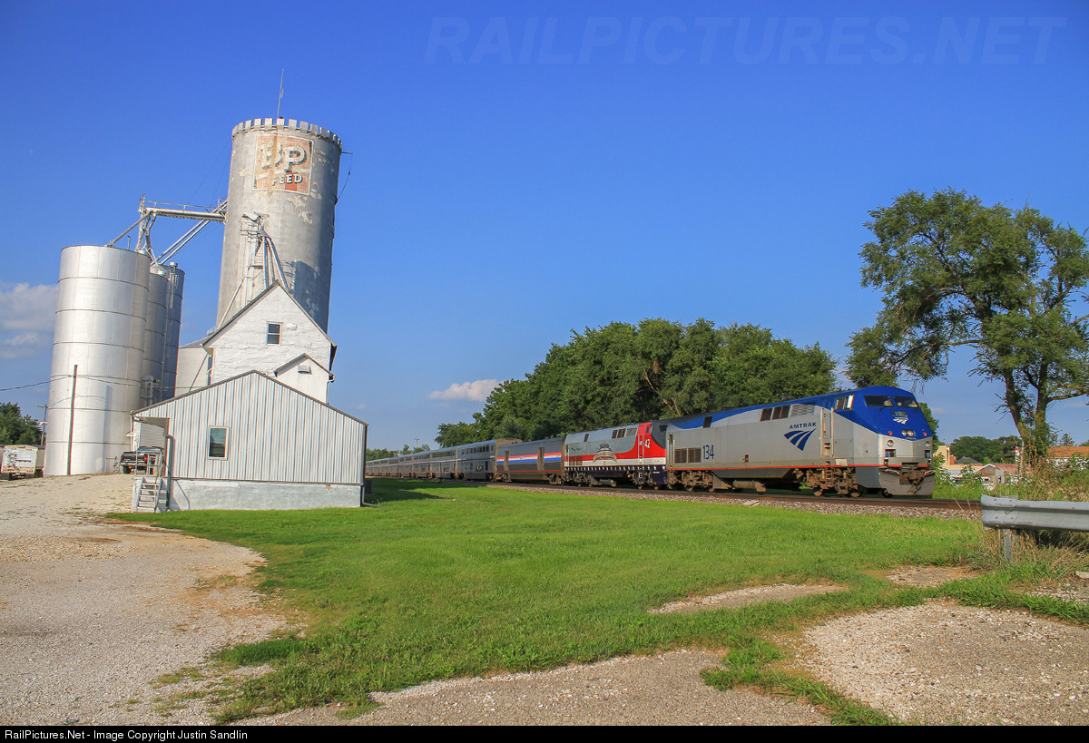 RailPictures.Net Photo: AMTK 134 Amtrak GE P42DC at Onieda, Illinois by Justin Sandlin
