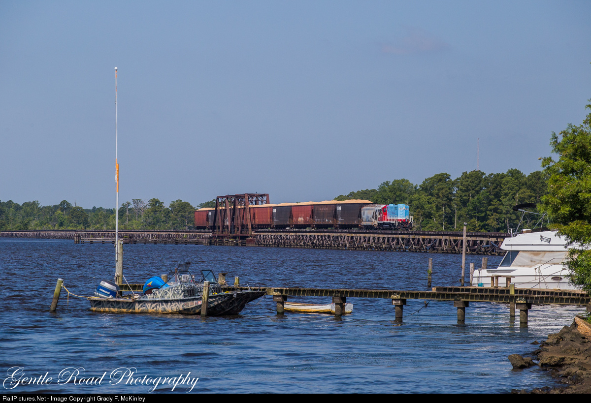 Carolina Coastal's #119 Plymouth turn slowly crosses the Pamlico River in picturesque Washington North Carolina. This scene plays out M-F after the interchange with the 120 job from Wilson occurs in Chocowinity.