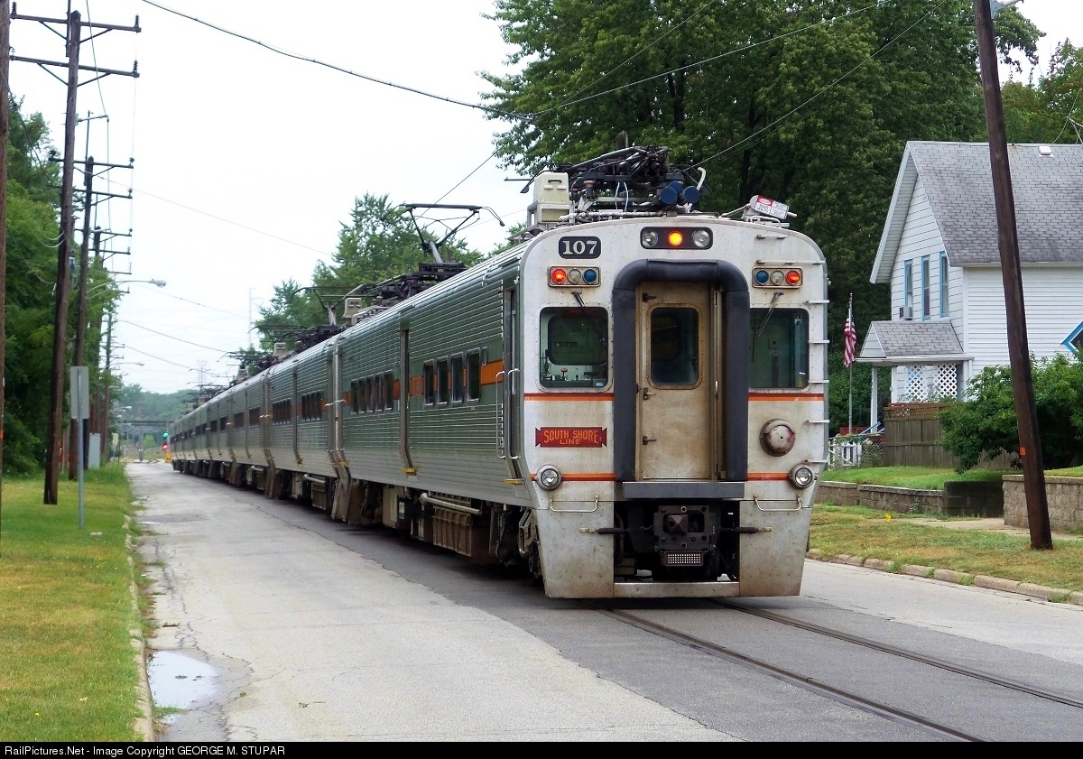 RailPictures.Net Photo: NICTD 107 Chicago SouthShore & South Bend Railroad Nippon Sharyo EMU at Michigan City, Indiana by GEORGE M. STUPAR