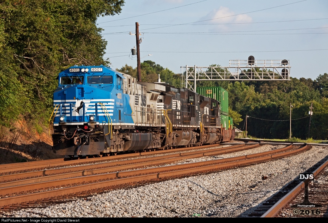 | NS AC44C6M 4001 "Sonic Bonnet" takes the lead position on Chicago bound train 216 seen shortly after it's departure from the originating point of Inman Yard. 216 will make a pickup at Whitaker Yard in Austell within the hour prior to continuing it's Georgia Division trip to Chattanooga. |