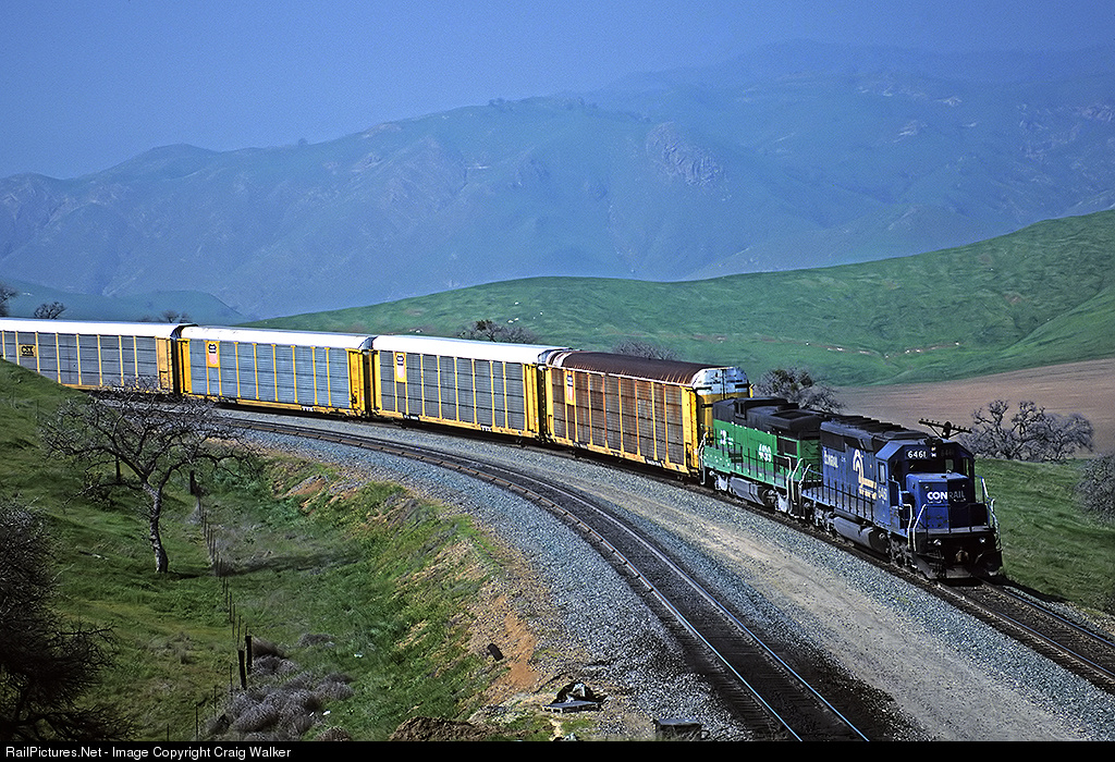 What appears to be one of the cooler consists to lead a train over the Tehachapi Mountains is, in actuality, just the rear helpers on a westbound Burlington Northern Santa Fe freight (H-KCRI1-04) at Bealville, California, on March 7, 1997. But I'm not complaining, as Conrail SD40-2 6461 and Burlington Northern B30-7A 4099 add some color to the train. Interestingly, since one of the units is cabless, the helper crew would have had to be in the Conrail unit.