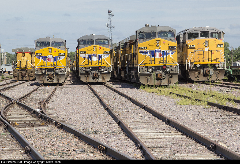 | Due to the down turn in traffic this summer (2016), Union Pacific has stored many locomotives at various locations across their system. Here we see 45 plus units waiting for the call back to duty. |
