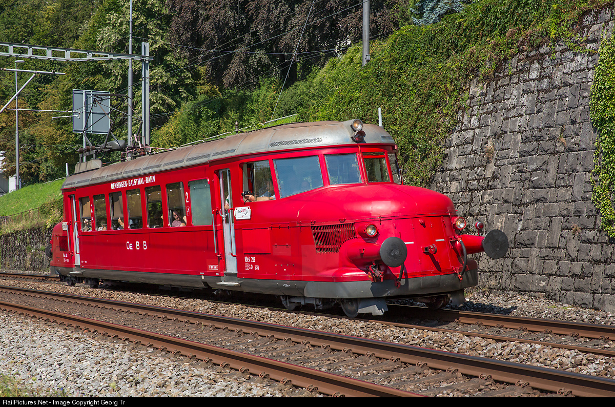 There are two operational "Red Arrows" nowadays, this RBe 2/4 # 202 of the Oensingen-Balsthal-Bahn and the RAe 2/4 # 1001 of SBB Historic. And there is the double "Churchill-Pfeil" RAe 4/8 # 1021 of SBB passenger division. RBe 2/4 # 202 was built in 1938 as CLe 2/4 207, later renumbered # 607, then 1007, now RBe 2/4 # 202. Running for the OeBB since 1974. The classic vehicle is on a charter run from Olten via Berne-Fribourg-Puidoux-Chexbres-Vevey to Brig and is near Chillon castle.