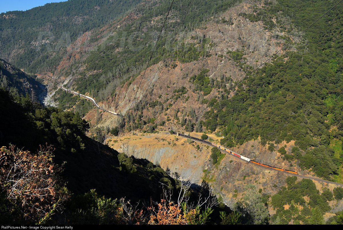 My first visit to the Feather River Canyon ended up being quite successful, which was a nice mood boost after a less-than-stellar visit to the Shasta Route. I spent most of my time near the upper end of the canyon around Keddie, so on my third and final day in the FRC, I decided that if I found a westbound heading down into the canyon in the early afternoon, I'd follow it all the way out to Oroville. Luck was on my side when a midday BNSF freight got delayed by track work, setting it up for a nonstop run down the canyon in spectacular afternoon light under a crystal clear sky. Having noticed how long the train was, I made sure to leave time for a shot from the spectacular overlook between Pulga and Poe. At 5:30 P.M., the 6,700 foot, 98 car train is seen simultaneously traversing Tunnels 11, 10, and 9 as it twists through the final miles of track in the scenic Feather River Canyon. This train ended up being the perfect length for this angle, with the DPU's having just come into view in the distance, about to enter Tunnel 11. I'm glad I jumped on the chance at this shot, as a UP freight that had been following close behind ended up triggering a detector near Pulga, sending the conductor walking back over a mile; that train would not reach this spot until long after the shadows had filled the canyon.