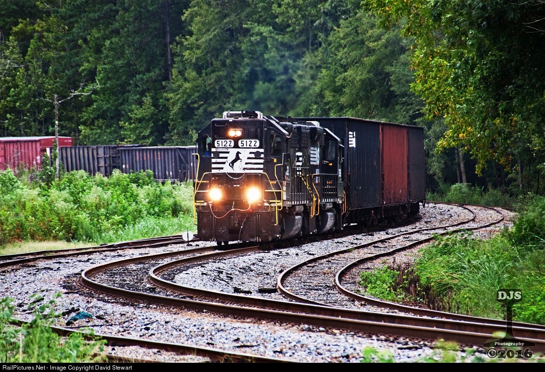 It's a dreary, drab, wet overcast Friday morning as Madison District twiweekly local, G07 works through the S curves approaching Minneta on the south side of Monticello, Georgia. Power for the week has been a pair of soon to be forgotten high hood GP38-2s, NS 5122 and NS 5098.
