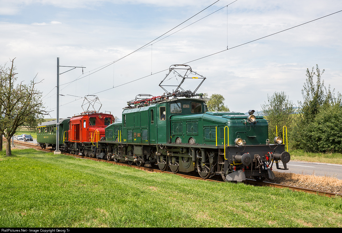 Two "crocodiles" on the Seetal line between Hochdorf and Ballwil, leading is the green Be 6/8 III # 13302 of SBB Historic, based in Rapperswil and maintained and operated by "Betriebsgruppe 13302". The shorter red "Seetalkrokodil" De 6/6 15301 was built in 1926 by SLM and BBC (together with sisters # 15302 and 15303) for the SBB line Wildegg-Lenzburg-Beinwil-Lucerne, the Seetal line (Lake Valley Line). In 1983 it was sold to the Oensingen-Balsthal-Bahn for freight service, but had a severe damage in the electric part in 1990. Made operational again by Association Seetal Crocodile 15301 till 2008 and based in Bahnpark Brugg (AG) till 2016, now new in Hochdorf.