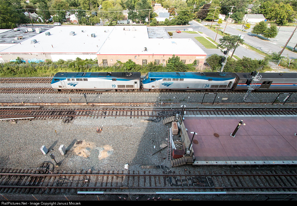 | The Capitol Limited passes the Metro Twinbrook station. Hopefully all of the complicated hardware seen on the Metro tracks (lower 2) are being looked at as part of the SafeTrack effort, a series of segment closures designed to allow for catching up on deferred maintenance in the Metro system. Just off the left side of the frame is a Metro crossover; just off the right side of the frame is a CSX crossover, at "Melrose." |