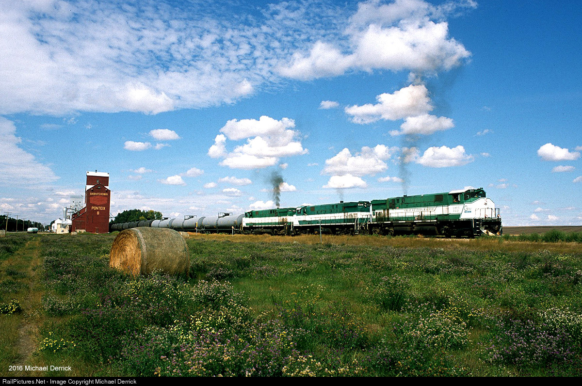 If there was one "signature" shot I had to identify on the Great Western Railway between Shaunavon and Assiniboia, it would hands down be at Ponteix. Ever since seeing photos of the GWRS M420Ws, I desperately wanted to photograph them coming by a classic Saskatchewan Pool grain elevator. You can't ask for much more of a classic structure than the Ponteix elevator, even if the Pool logo is now painted out. While the tank cars suggest the GWRS is still handling crude oil, that is not the case. DOT 111 tank cars are stored all over the GWRS system, providing extra revenue for the railroad's agricultural traffic base. The M420Ws are on borrowed time, with the entire fleet for sale.