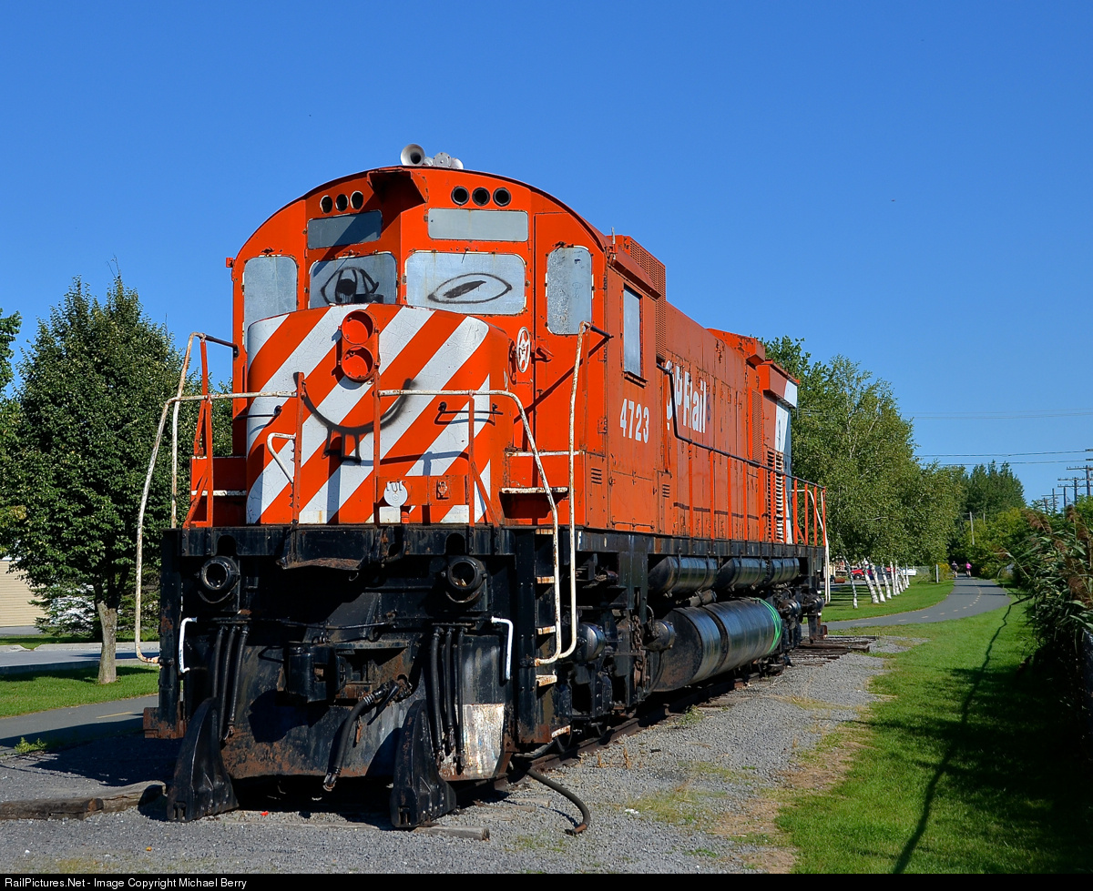 | Not looking any better. It had been a little while since I had checked in on 'preserved' M636 CP 4723 in Farnham and unfortunately it is not looking any better. It sits near the ex-CP station, which is currently abandoned and potentially facing demolition. In front of the station is CMQ's ex-CP main line. |