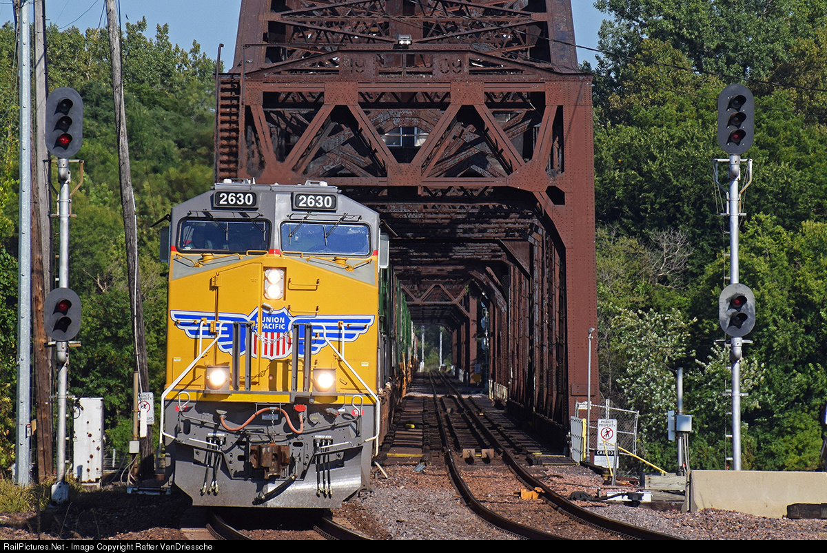 UP 2630 is just coming off of the Mississippi River Bridge, destined for a crew change at the Clinton pad.