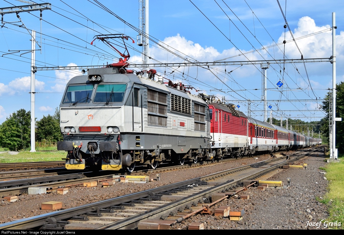 | This is the first manufactured prototype locomotive of Class 350 ZSSK, with a retro - original paint scheme. The locomotive still has the original Czechoslovak designations as ES499.0001. Route R 610: Košice - Bratislava. |