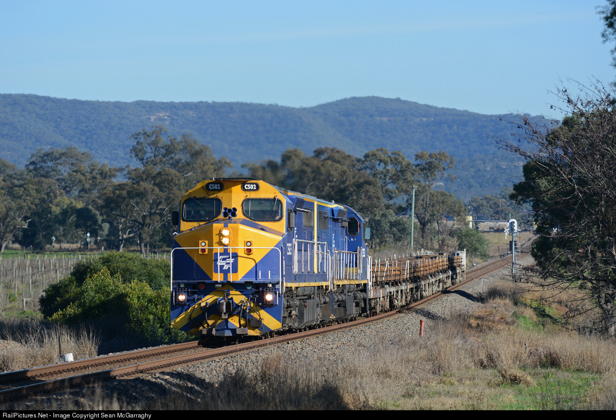 | Espee Railroad Services operated a rail train in early September on the Ulan line using leased C502 & C508 from CFCLA. On this occasion, 5M42 empty rail set from Gulgong is passing through Sandy Hollow to Muswellbrook having dropped rail around Kerrabee during the early hours of the morning. |