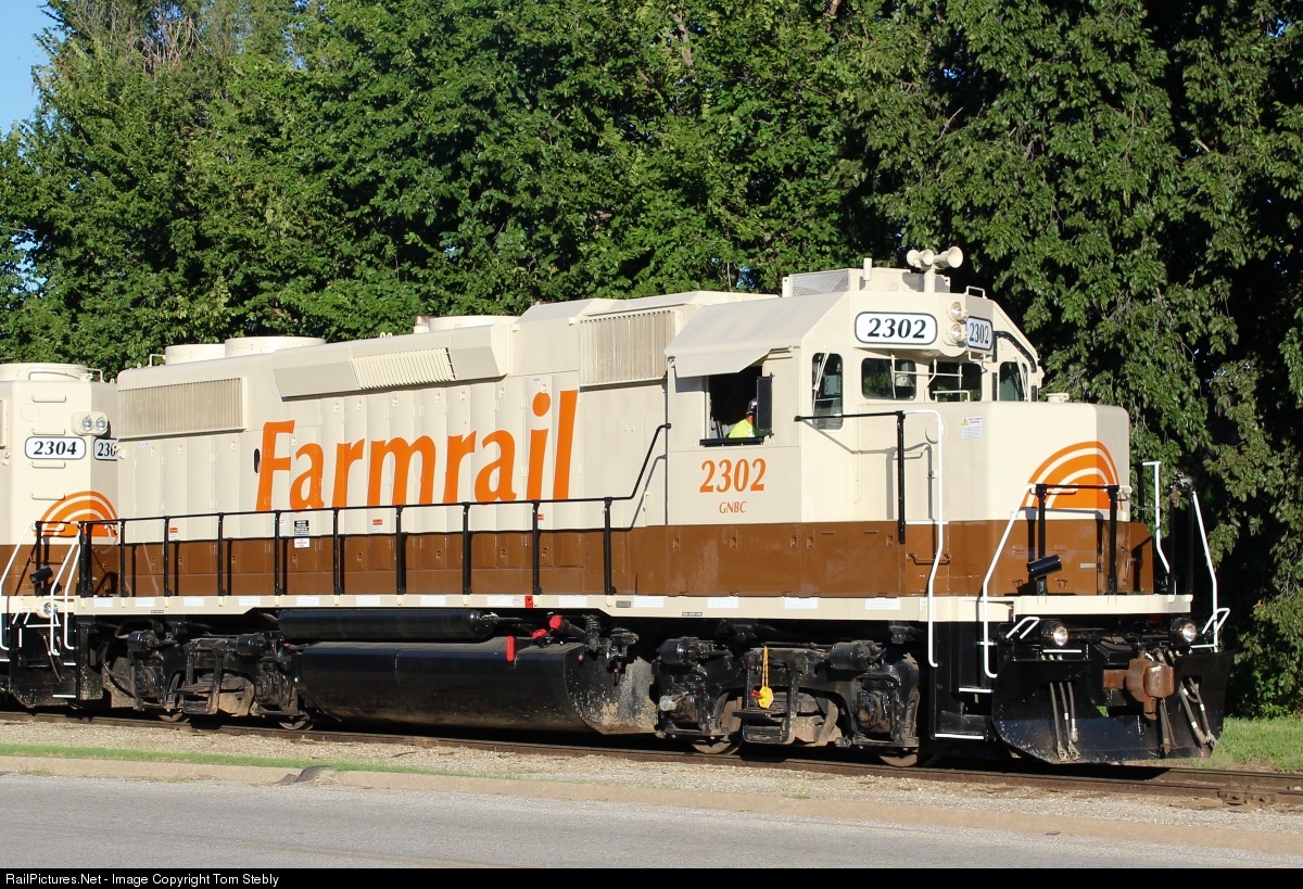 GNBC 2302 leads a quartet of the new to Farmrail GP38-2s South out of the former Frisco yard in Enid with an evening manifest. The engines were recently acquired through Metro East Industries, replacing older power that has recently been sold. Originally ordered by the Rock Island and delivered to the Chicago and Northwestern, the units sport the classy Farmrail paint scheme.
