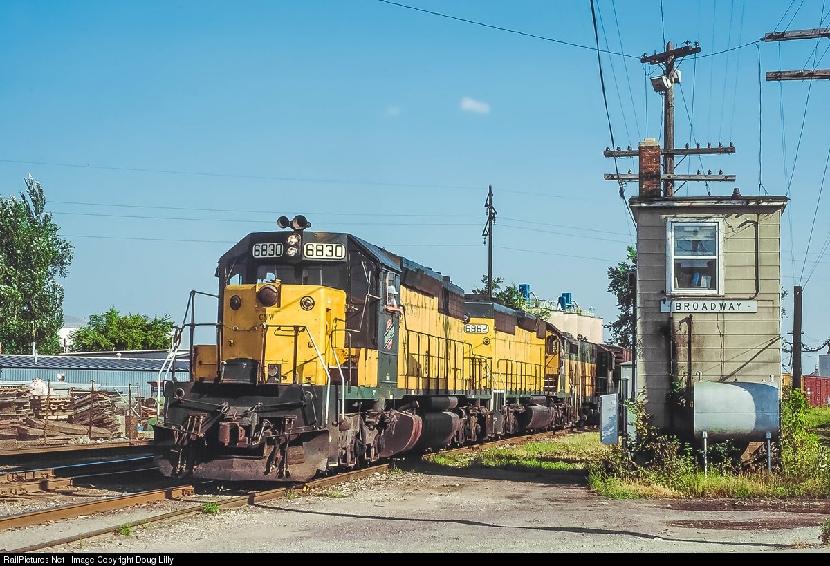 Travelling north, this Chicago & North Western manifest passes Broadway tower in Green Bay, Wisconsin. After clearing a grade crossing of the street with the same name, the train will be in C&NW’s Green Bay yard.