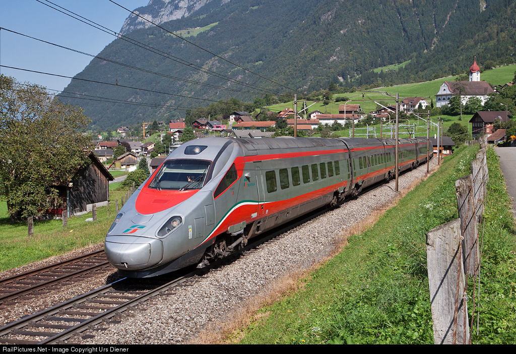 | Trenitalia tilting train ETR 610 003 is climbling up the Gotthard north ramp on his way from Zürich (Switzerland) to Milan (Italy).